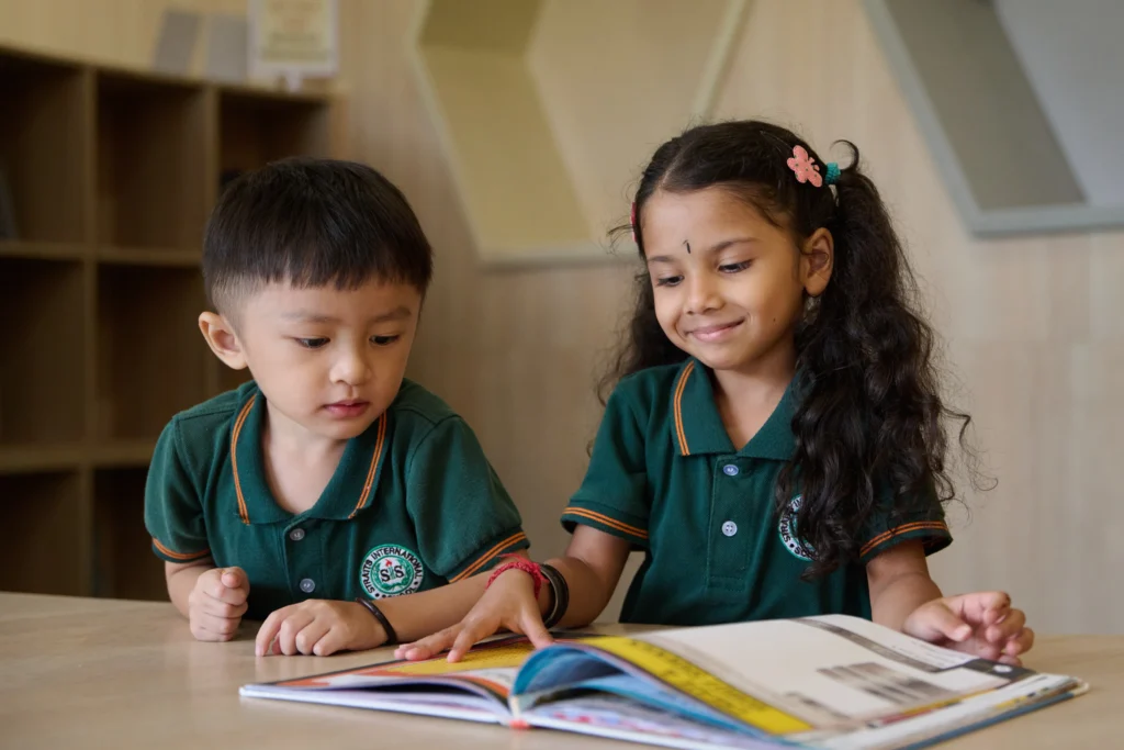 小学部(5〜11歳対象)は、英語を主言語としながら、マレー語や中国語も学ぶ三言語環境で、多様な教科をテーマ別に横断する学び(International Primary Curriculum/英国式カリキュラム)を融合しています。科学・算数・言語・芸術・体育などの教科を通して「探究」「協働」「国際的視野」の育成を重視し、日々の授業や課外活動を通じて生徒が自ら学び成長する力を育てます。